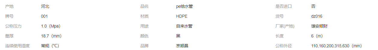hdpe給水管大口徑直埋管拉管熱熔連接315飲用水管道定制 pe給水管